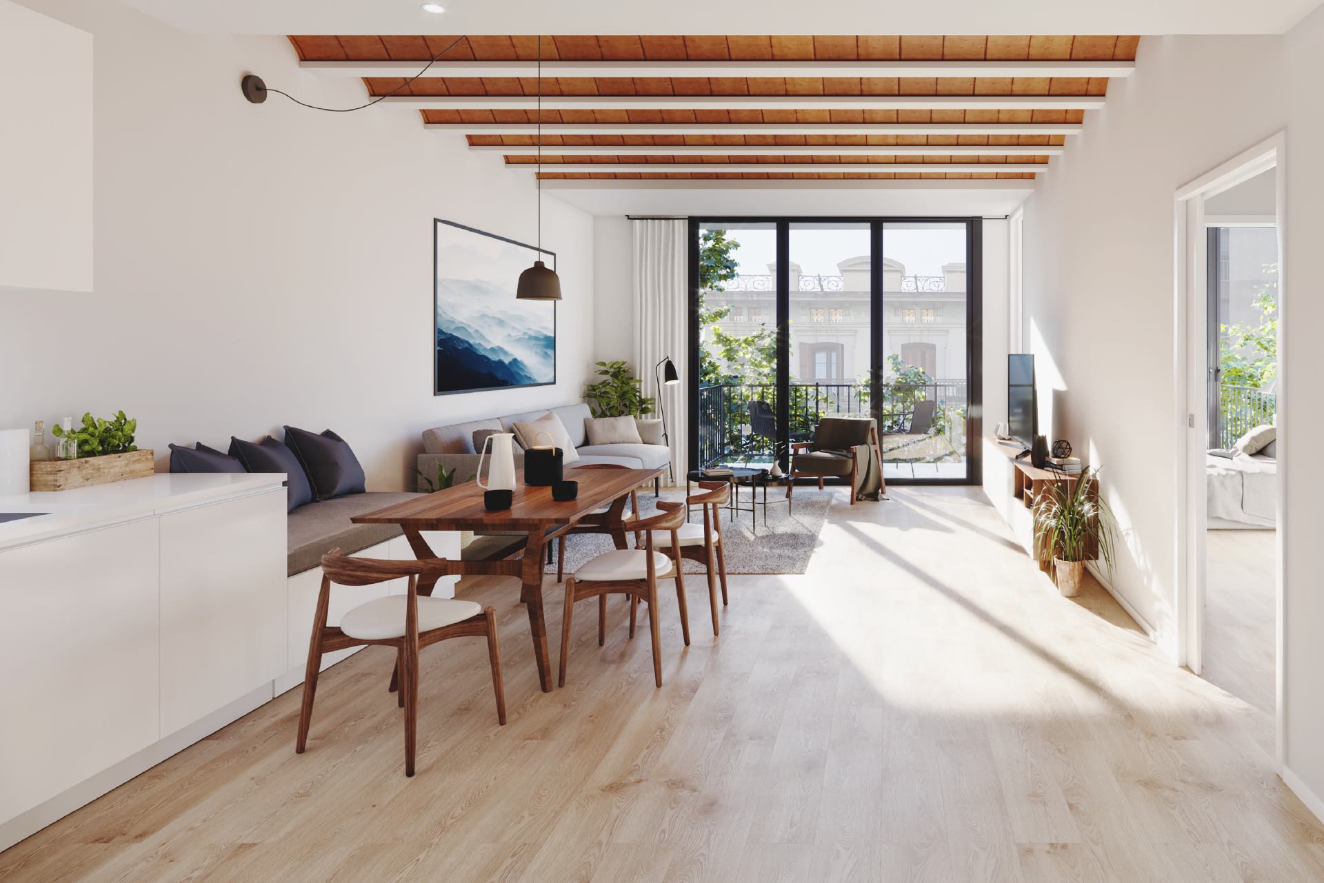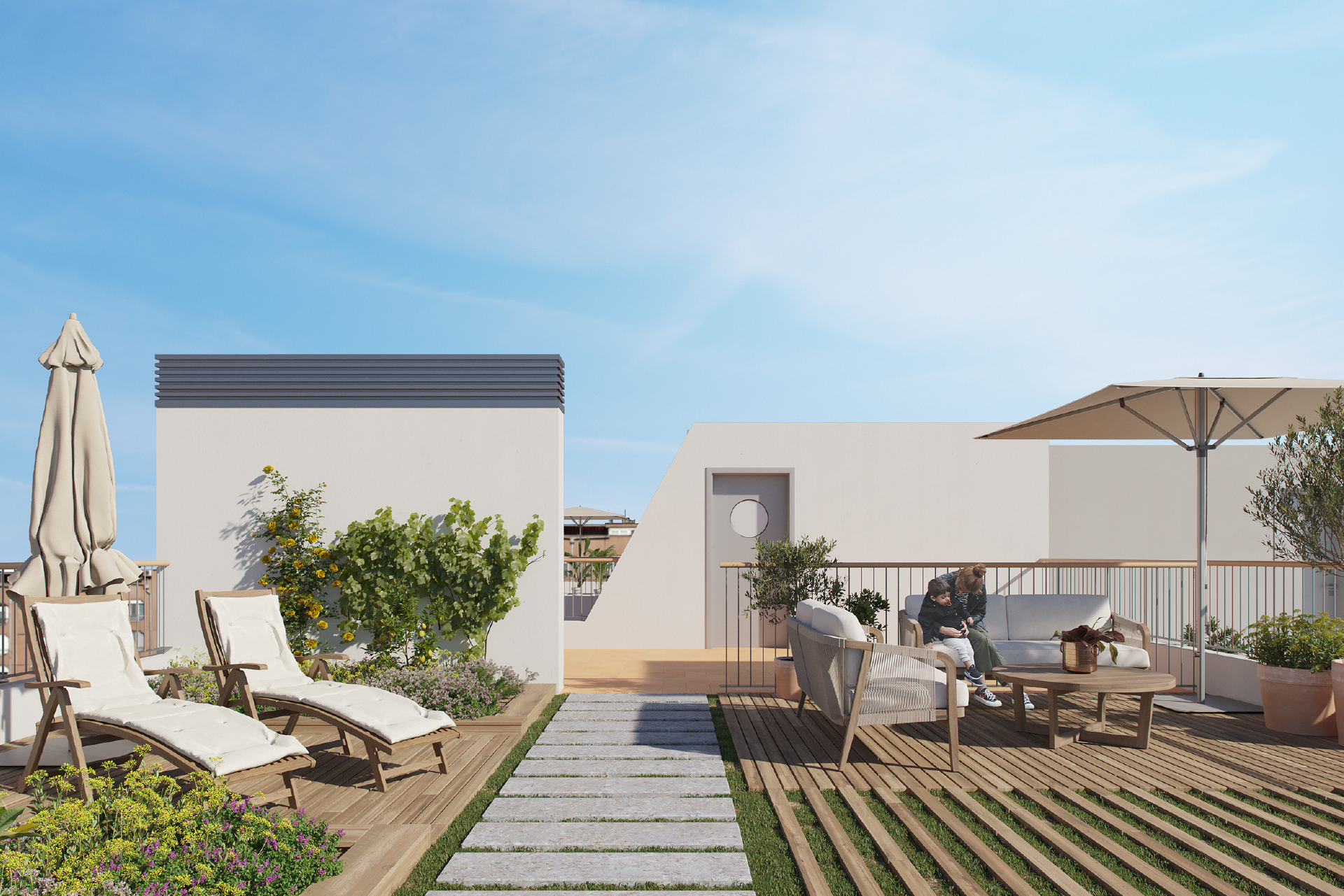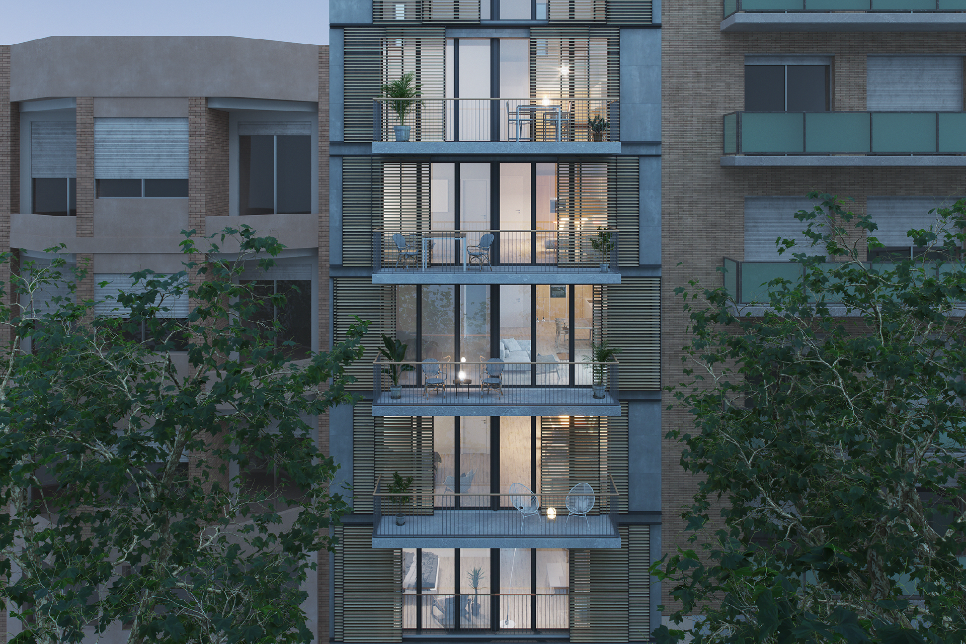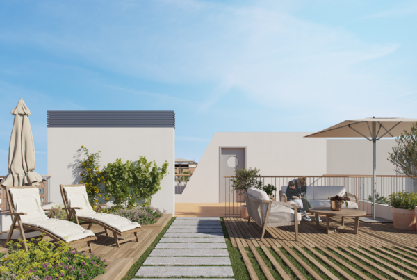 Promoción de 11 viviendas de obra nueva con pisos y áticos con terraza situada en Navas, muy próximo al barrio de El Clot.